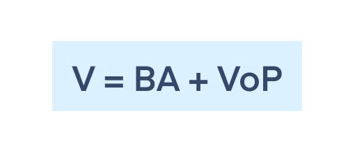 In other words, your value is the sum of your brand advantage (what your product has over others or your USP, for example) and the end value of your product to the customer.