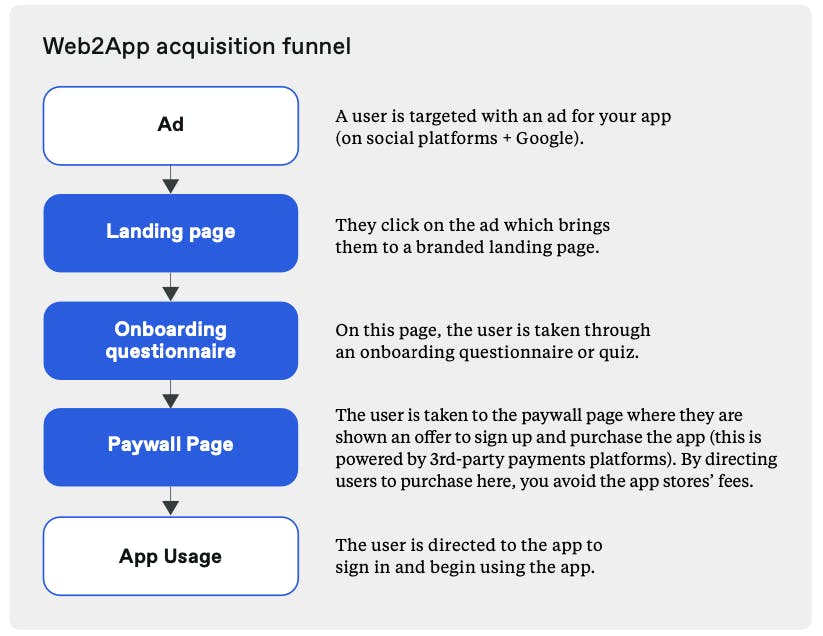 Improve your marketing: Since 2021, Apple's IDFA has only been available upon user permission, with less than 10% of iOS users opting in. Alongside app stores' SKAdNetwork (SKAN) restrictions, this has limited developers' marketing scope and increased advertising (and acquisition) costs. But restriction-free marketing programs on the web provide greater clarity on campaign performance, enabling you to test ads at lower cost, analyze channel traffic more precisely, pin down purchase attribution and iterate quicker.