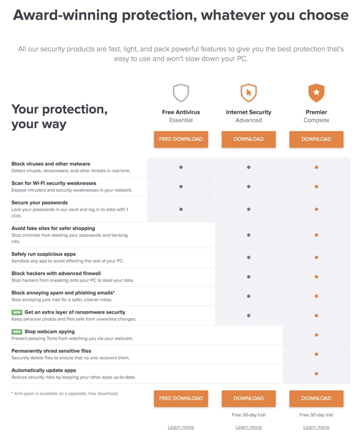 This pricing tier is specifically for those looking for their first taste of Avast. They’re happy with a basic level of security as they want to test drive the product; see what it has to offer. Avast has made sure that the "essential features" are covered in the free-of-charge tier, and in doing so they are attracting as many potential customers as possible.