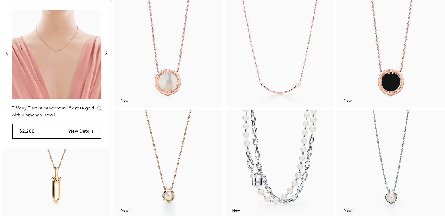 And then there’s Tiffany & Co., which is notoriously known for people who can enjoy the really fine things in life. Its prices are proof. For one, you have to scroll your mouse directly over a piece of jewelry to see the price. The fact that the prices aren’t openly displayed also signifies that it is luxury. But, once prices are revealed, they are priced in even numbers, like “$2,200.” And there are no discounts because the people shopping at Tiffany & Co. don’t care about discounts.