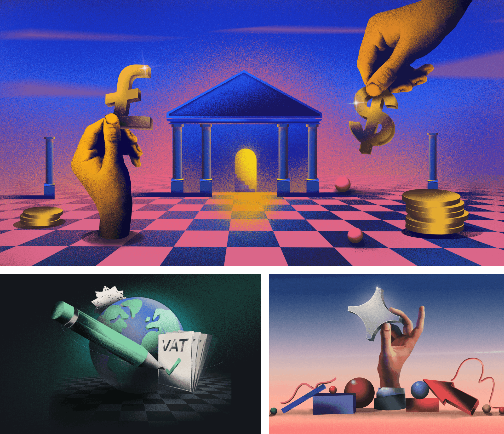 In the end we think the style meets the goals of being global and grand in aesthetic. It’s futuristic, whilst being carefully curated with a traditional painterly application making it human centric. The vibrant colour palette throughout manages to balance well against the dark theme background of the website- bringing a bright and accessible pop-art, trendy feel to the illustration scapes. Together we felt all of these elements were perfect attributes for our new brand approach which positions Paddle as a ‘North Star’ to guide you throughout your journey of growth.