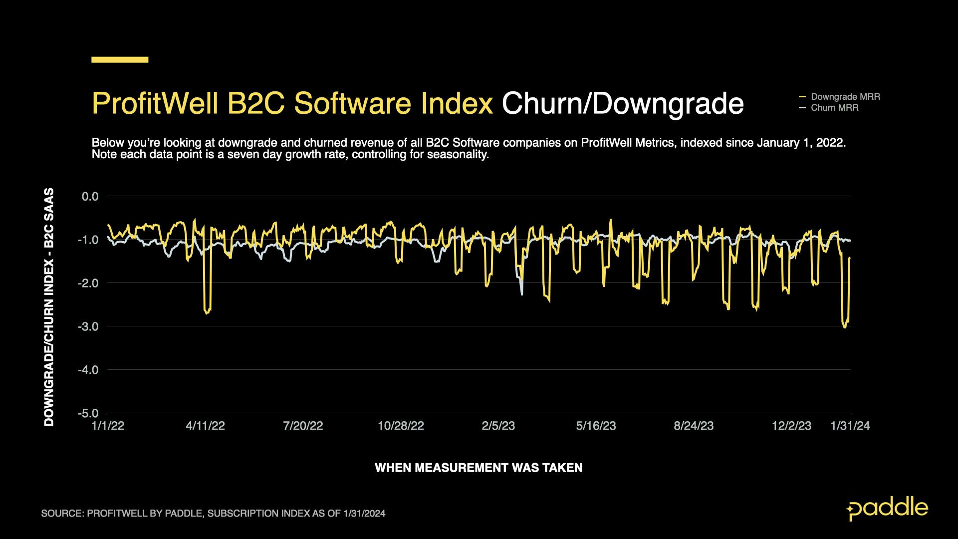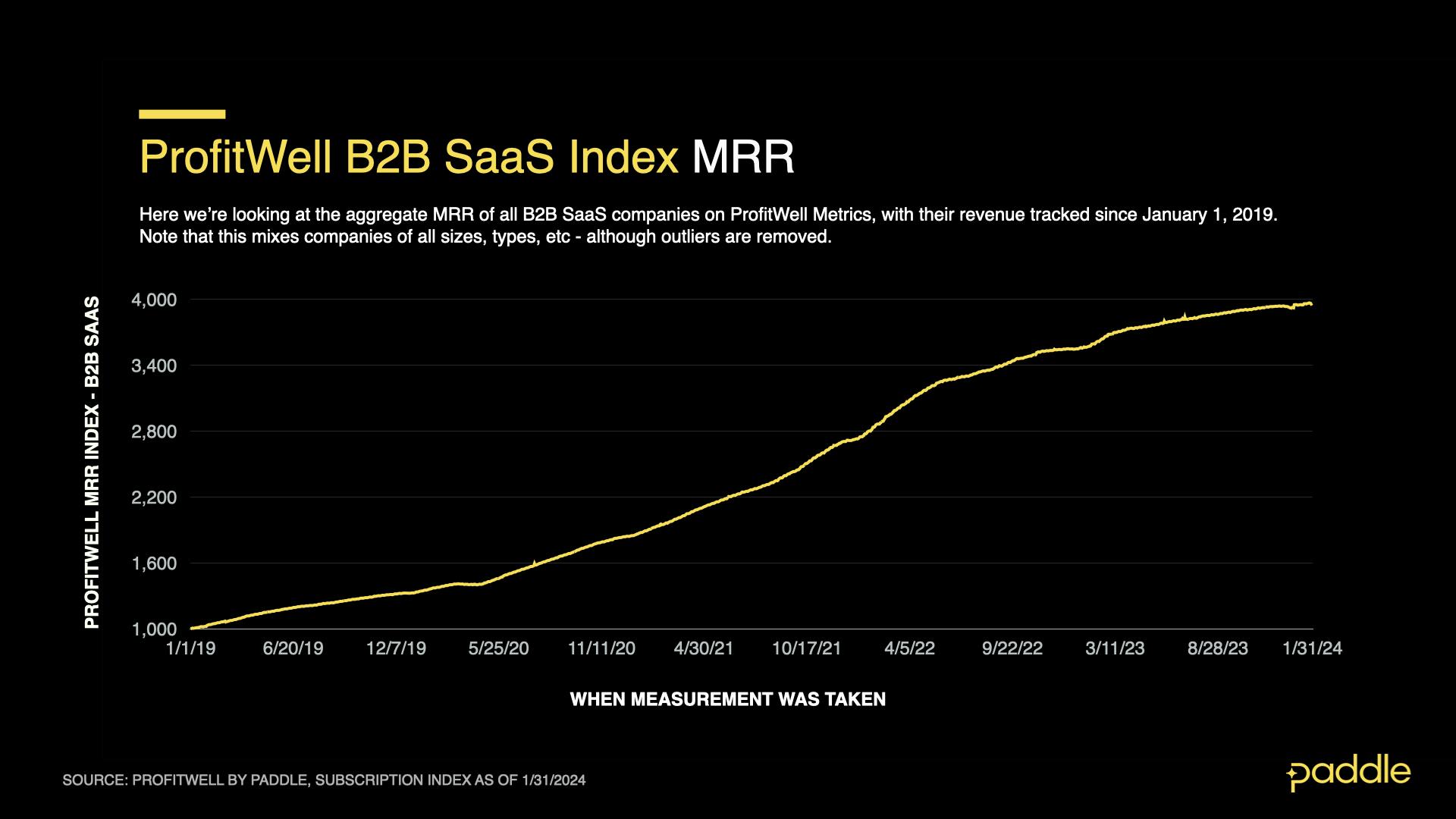 This is the latest in our ongoing market reports, which track the movement of the ProfitWell B2B SaaS Index, and its underlying growth and retention trends. This month, we examine January 2024 performance.