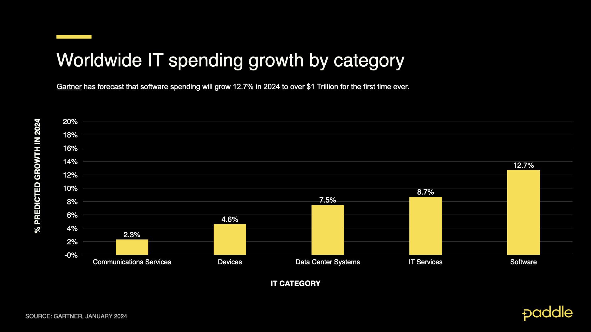 What does this mean for B2B SaaS? It’s a positive sign for software as a category but it doesn’t mean a blanket increase in spending across the board. Getting a slice of the pie will be dependent on the sector a company operates and the value it provides users.