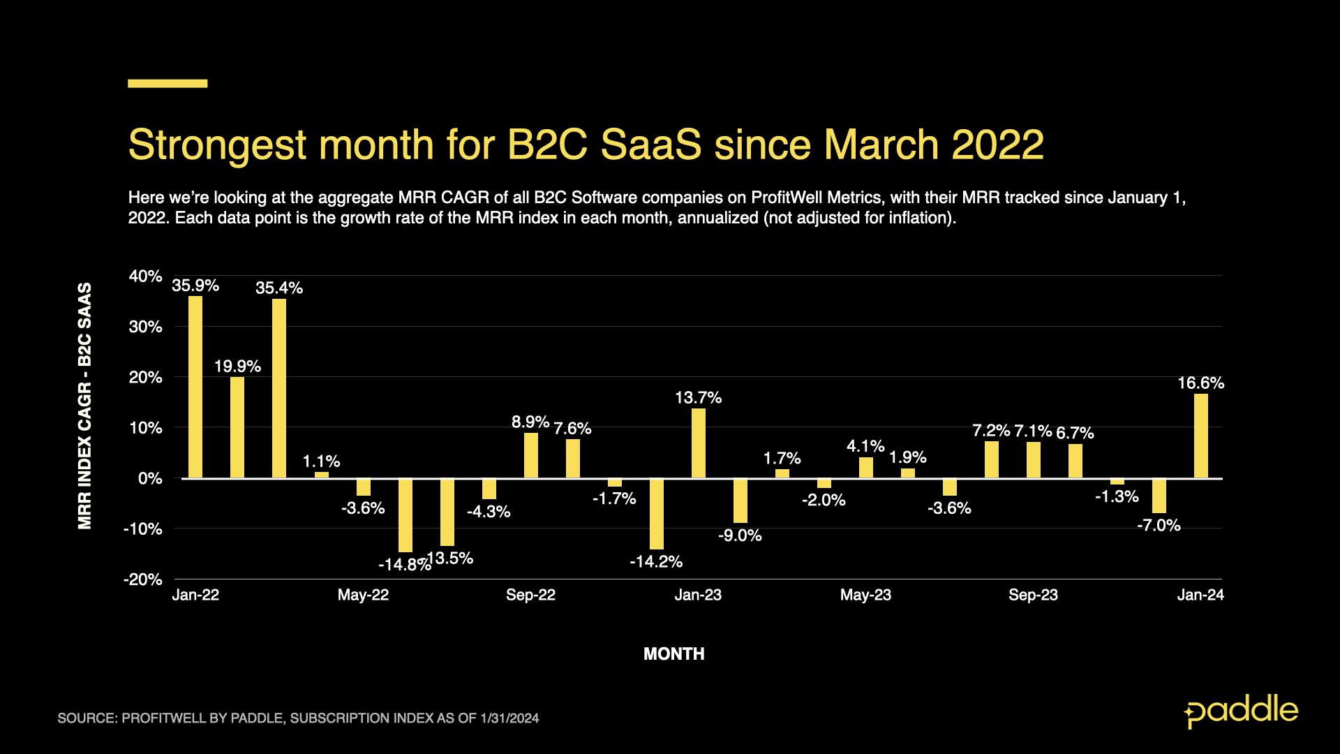 It was the first month since November that we’ve seen positive growth in monthly CAGR, with B2C revenue growth up 16.6%, a 23.6% jump from December 2023. It was also the strongest month since March 2022, thanks to a jump in new sales.