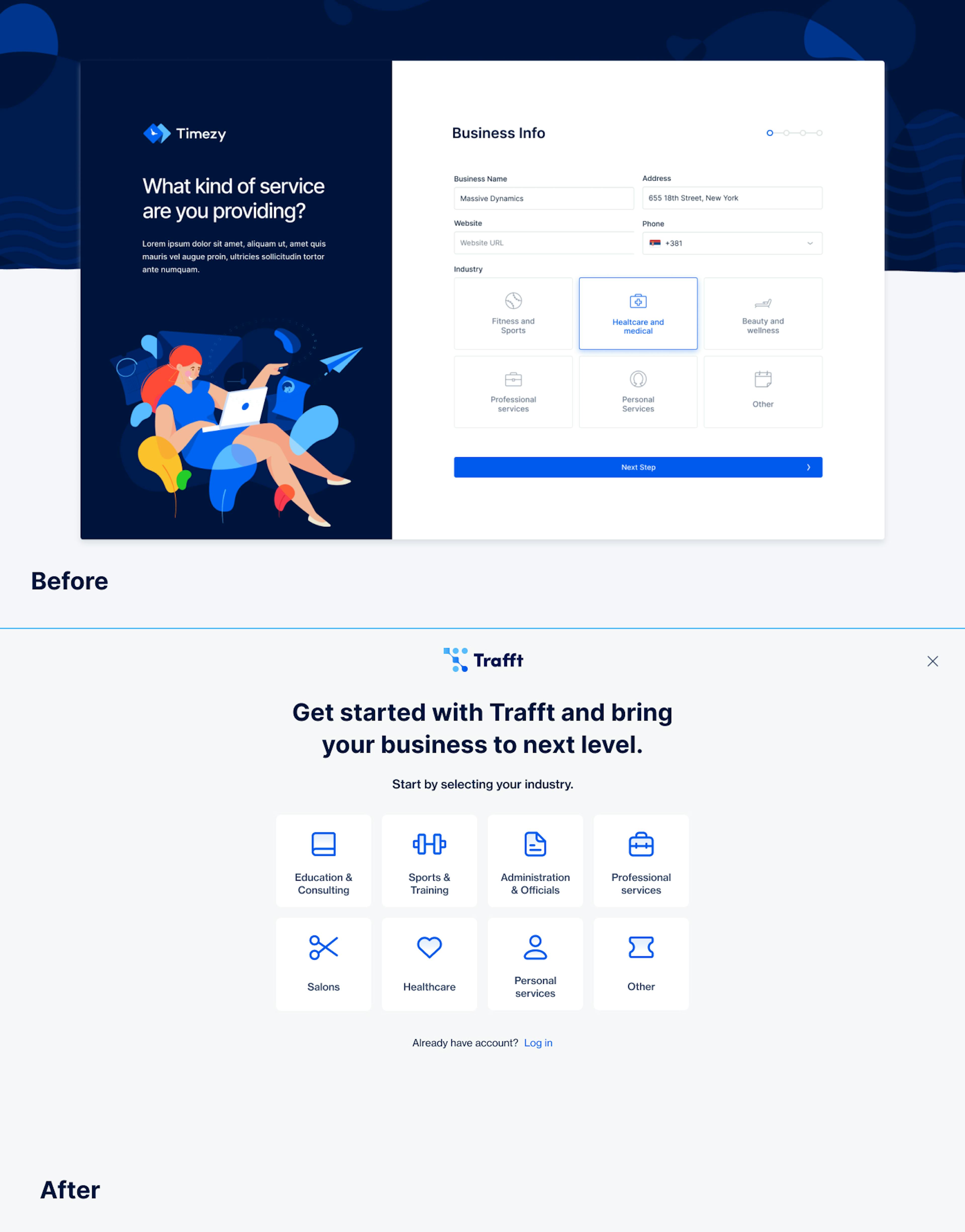 Trafft is suitable for multiple industries, so we used abstract terms to create a general-purpose feel. But this made it less appealing for users with a specific industry need.