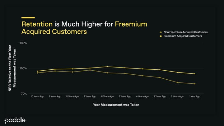 In addition, customers who convert from freemium go on to become the most valuable. In a freemium cohort: