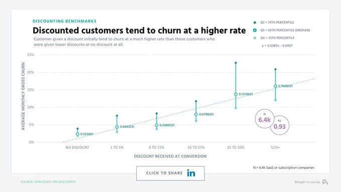 The temptation in a recession is to go all in on discounts to get more people through the door. But here’s the problem: discounts over 20% *double* churn rates.