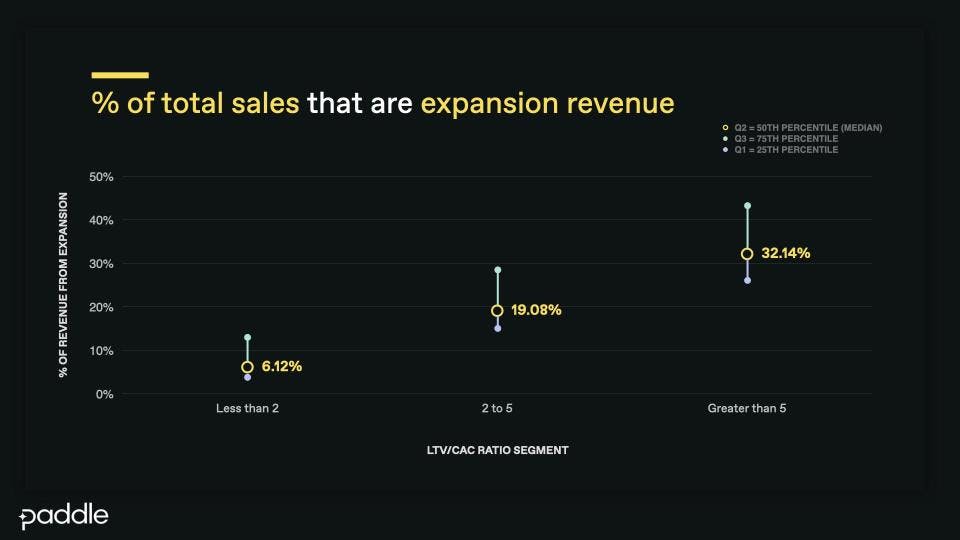 Companies with the most efficient LTV/CAC ratios heavily fuel their growth with expansion revenue — selling more to existing customers, not just new customers.