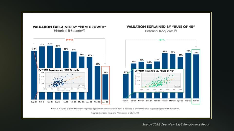 As early as late 2022, the OpenView SaaS Benchmark’s report found that efficiency metrics like the Rule of 40 and your CAC payback period play a much bigger role in valuations.