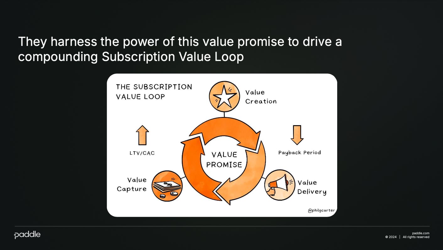 The first is having a unique and enduring core value promise, and the second is generating a compounding Subscription Value Loop in three steps.