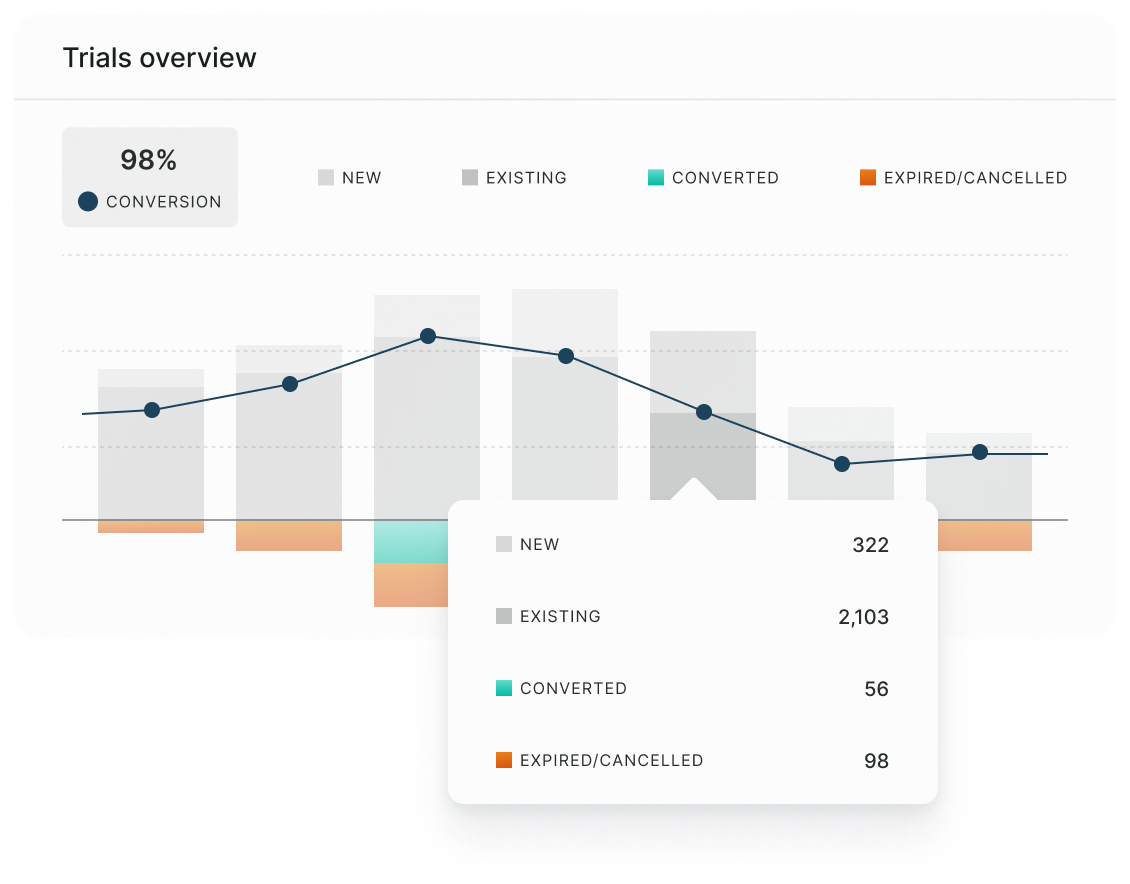 Drill into customer segments, cohorts, and pricing plan data to find growth trends.