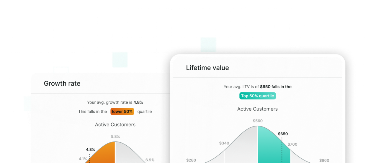 Use ProfitWell Metrics' powerful benchmarking and segmentation tools to see how well your business stands up against the competition and find the driving forces behind your success.