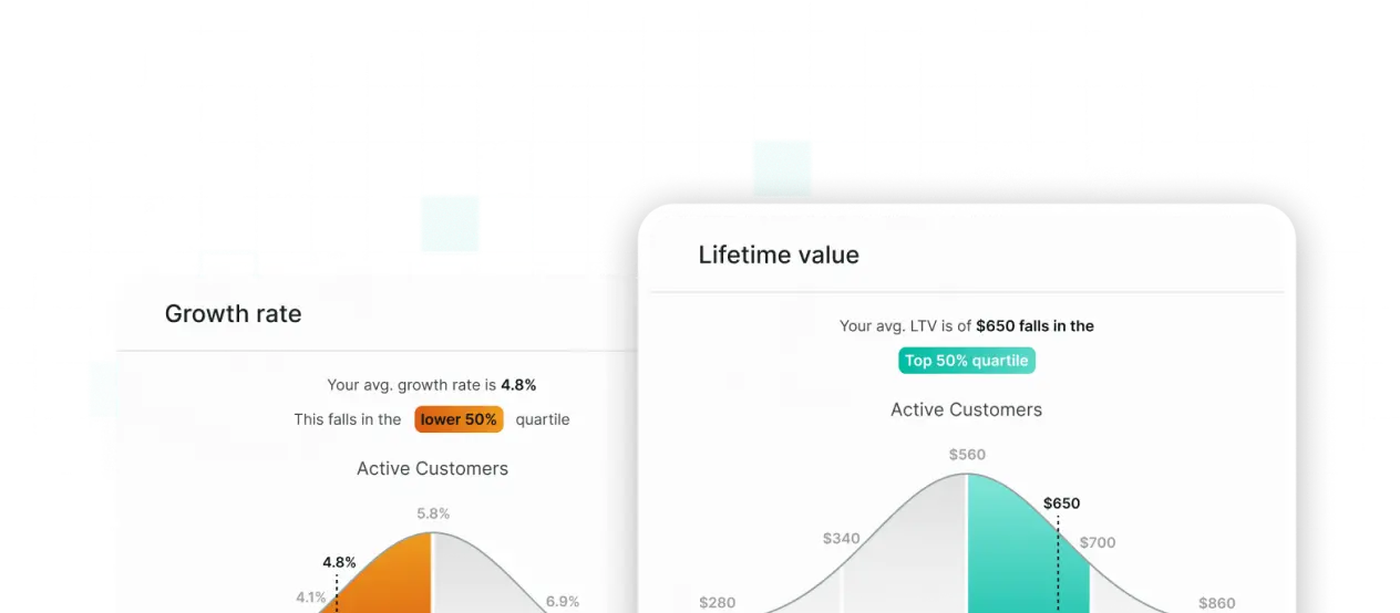 Use ProfitWell Metrics' powerful benchmarking and segmentation tools to see how well your business stands up against the competition and find the driving forces behind your success.