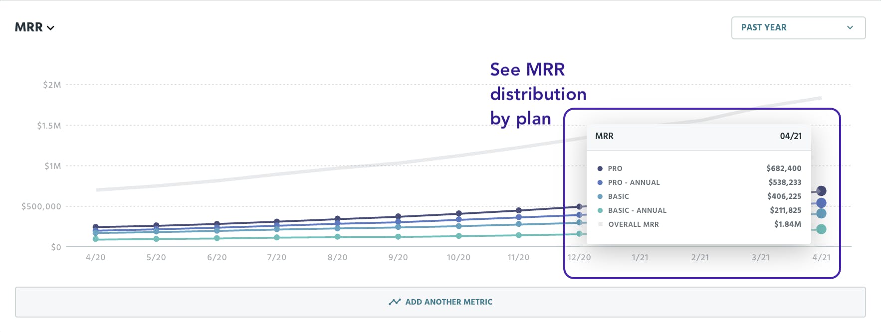 Monthly recurring revenue (MRR) is an important metric for SaaS companies. It's the amount of monthly predictable revenue that a company can expect to receive. It's calculated by taking the average revenue per user (ARPU) and multiplying that by the number of users you have. There's a lot you can learn from your MRR and ProfitWell Metrics makes it easy for you to break it down even further for proper financial forecasting and planning, and measuring growth and momentum.