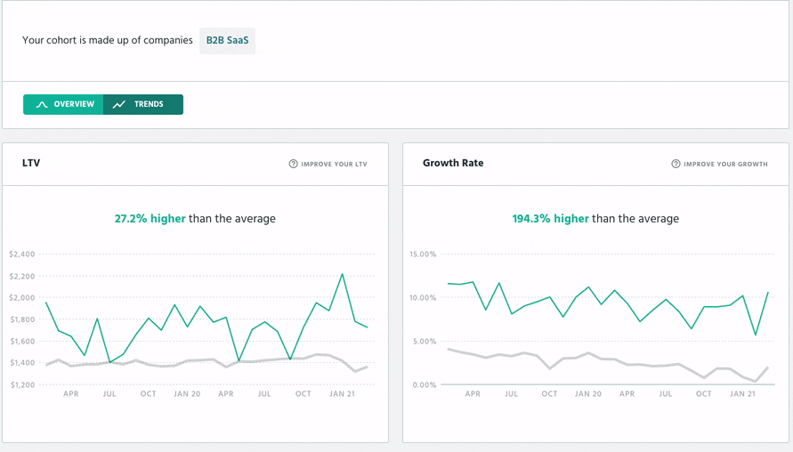 The better way is to improve your LTV. ProfitWell can help you can do that by optimizing your pricing, as well as help you take the right steps toward reducing churn and increasing the amount of time a customer stays with you.