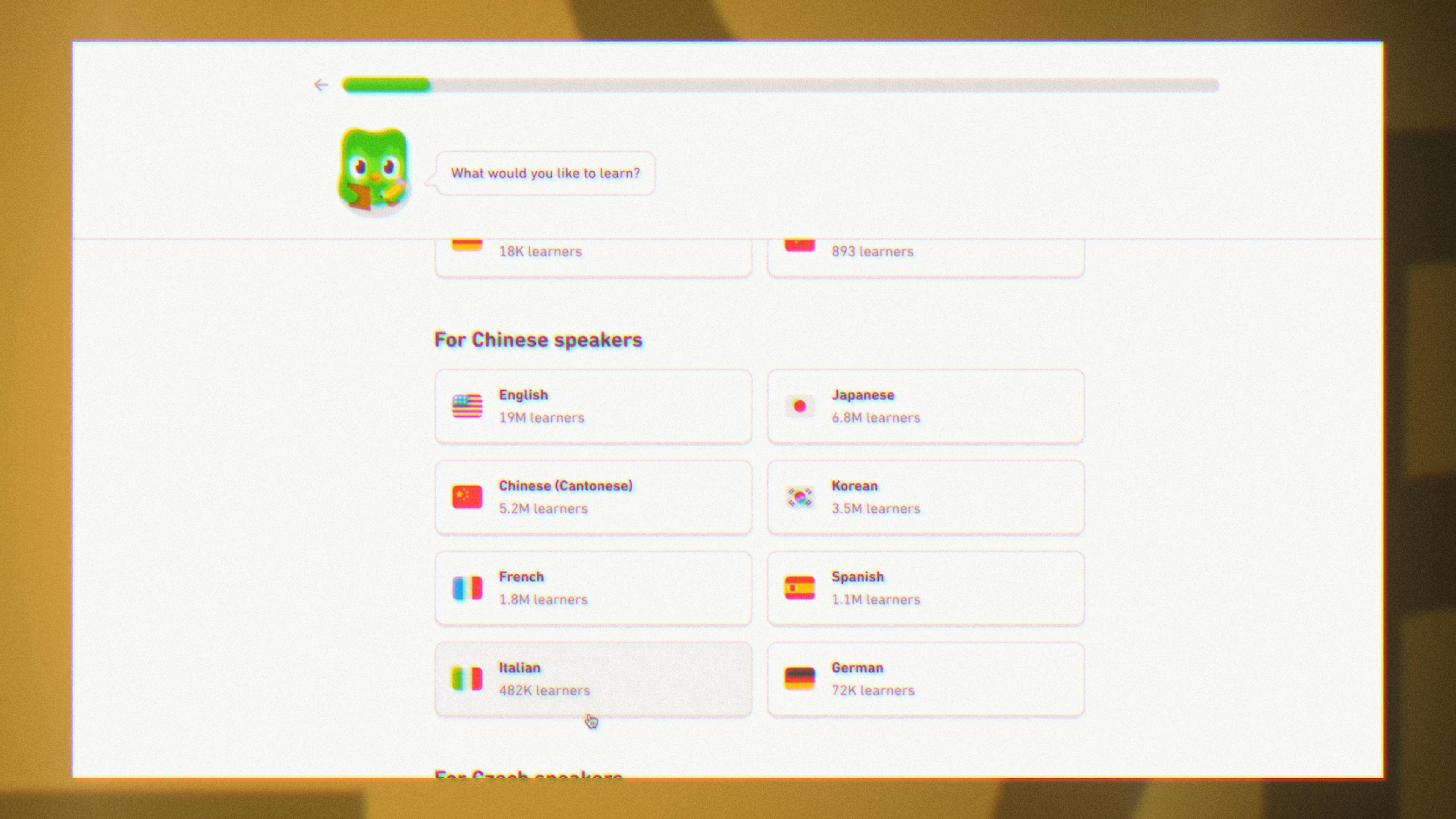 So this is really nice because previous iterations of the onboarding flow. Actually Duolingo just jumped straight. And you're starting to feel already the sense of connection because you celebrating with you.