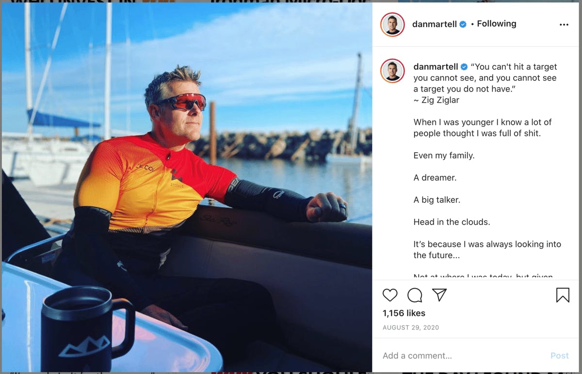 For those who don't know him, Dan Martell runs SaaS Academy, a coaching program for SaaS founders and executives. He's got 60.4k YouTube subscribers (a lot for SaaS), half a million subscribers on TikTok without dancing, and he's founded five SaaS companies. He also posts things like this—and while I'm generalizing, I tend to put my guard up with folks who post these types of inspirational posts. Of course, that says more about me than Dan (especially since this picture is fire. :)).