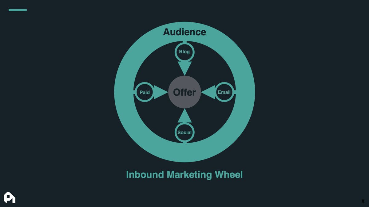 Traditional inbound marketing deploys what's known as the "wheel strategy." You take a content offer—ebook, webinar, industry paper, etc.—and then atomize the content and distribute it through email, social, ads, etc., to drive people to that offer. The entire goal is for someone to fill out a form and give you their contact information in exchange for the offer. You then nurture that lead through lead scoring and your sales team.