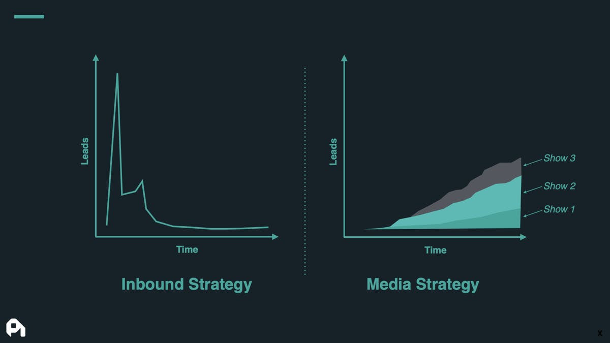 Instead of putting an offer at the center of the strategy, media centers on building audience. Your goal isn't to chase the spikes and long tails of an offer attracting leads; it's to move your audience count up and to the right. It's exceptionally effective, as well.