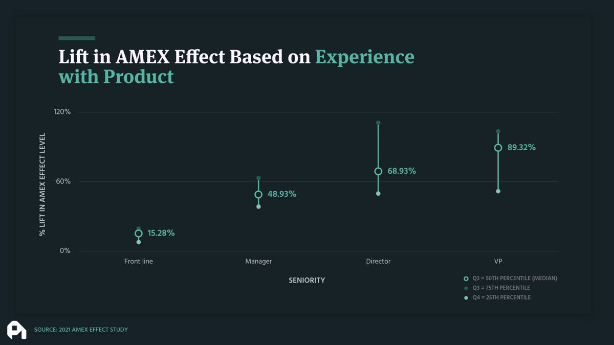 So frontline folks that were willing to pay about 15% more, which isn't much. But then when we get to managers, directors and VP's, they basically had more confidence in their decision and their willingness to pay or their Amex effect was 50 to 90% higher and in some cases broke 100% more willingness to pay. And the reason this is happening is they already have a clear signal that this product is worth while and worth quickly swiping that credit card.