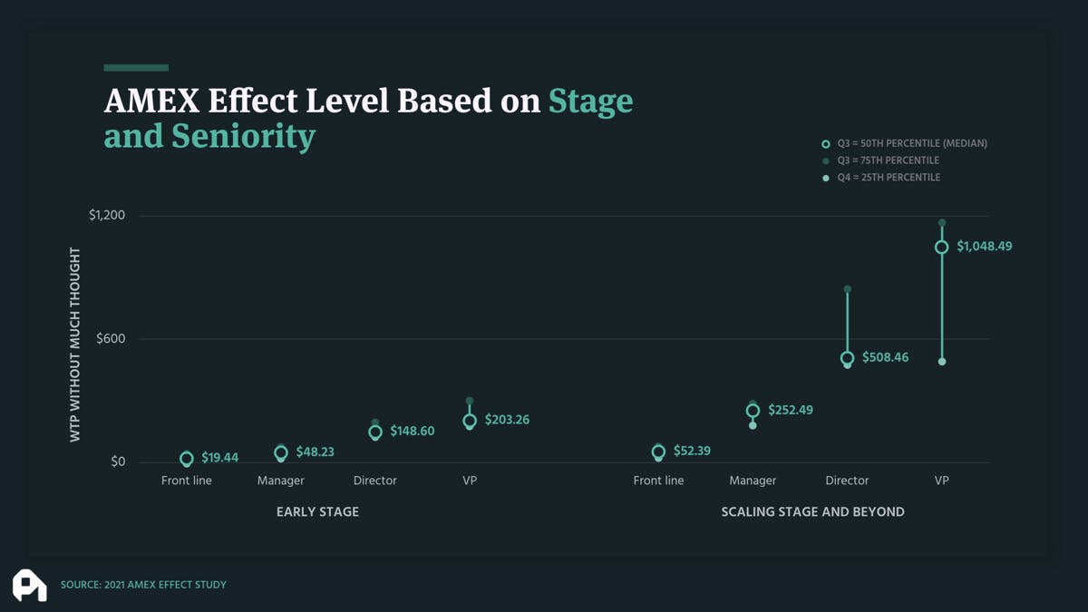 Now, in a B2B context, it's a really similar trend here, but it's, as I mentioned before, more based on seniority. And so with the graph that we set up is we basically looked at early stage companies and then post early stage, which is obviously really wide range. And then we looked at the Amex effect for front line manager directors, and VP's essentially put another way like what price point are they?